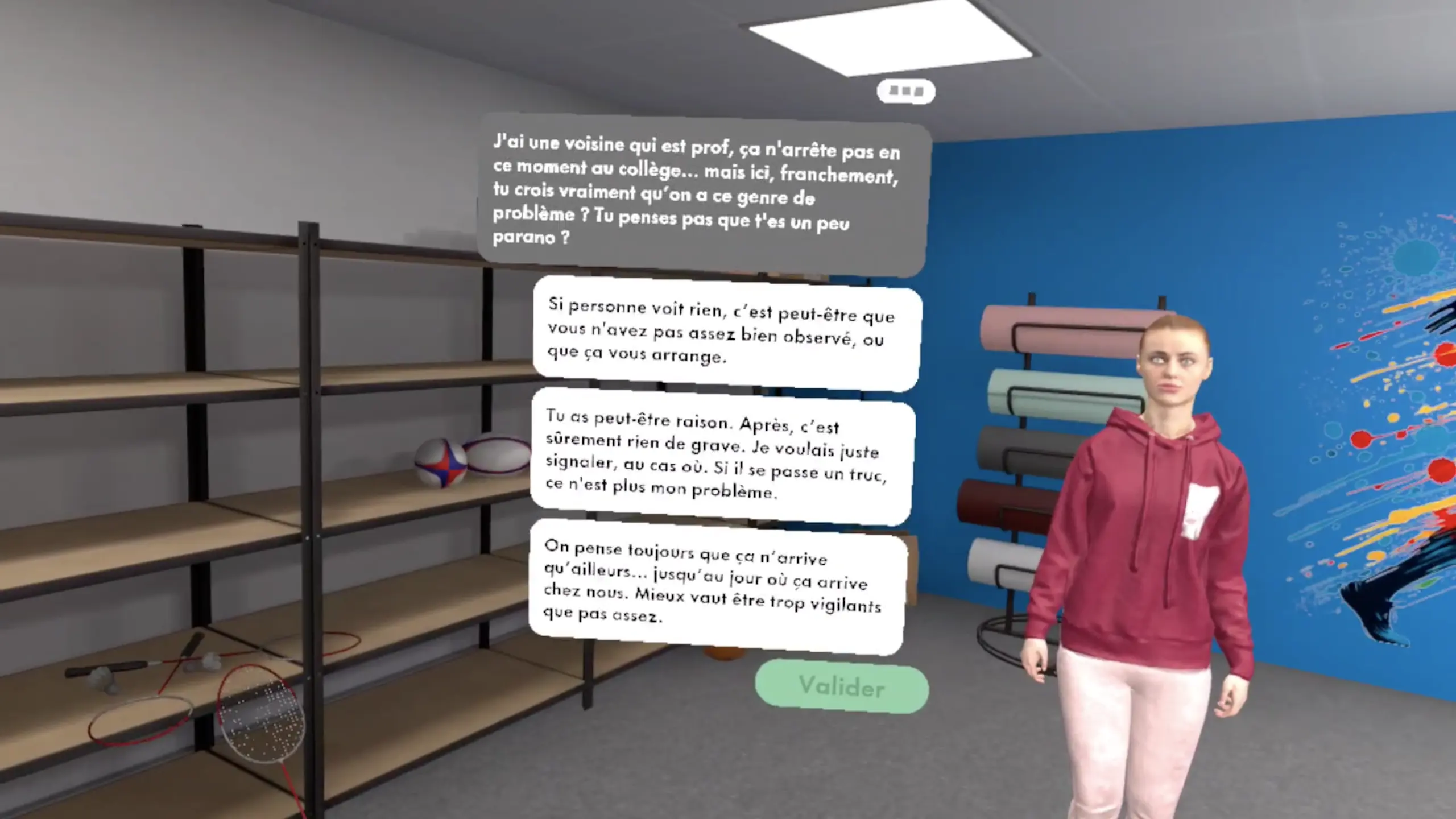 Détails du module VR de gestion d’une situation de harcèlement